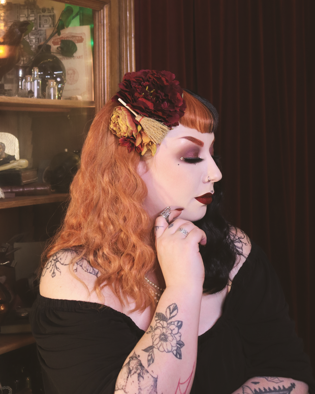 Retrouvez le rayon automne, entre citrouilles, feuilles mortes et Halloween, cette collection regroupe des ambiances orangées, spooky, dark et étrange. Entre horreur et vintage occulte. Si vous êtes une ghoul, tantôt gothabilly, tantôt psychobilly, une pin up ou bien gothique, alors vous êtes au bon endroit. Créatrice spécialisée dans l’univers rétro, je propose des fleurs pour cheveux pin-up, des illustrations, de la peinture et de la décoration, faites mains en Auvergne. Je propose aussi des accessoires vintage et des relookings inspirés des années 40-50. Retrouvez des bibis, hairflowers, créations personnalisées, accessoires et autres pour vos événements, mariage, show burlesques, pour les fêtes et diverses soirées ou spectacles.