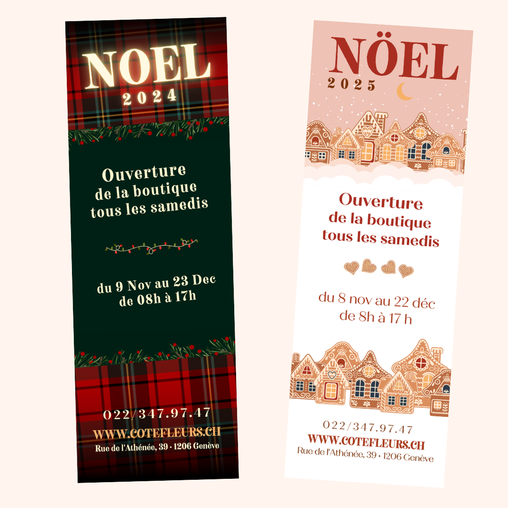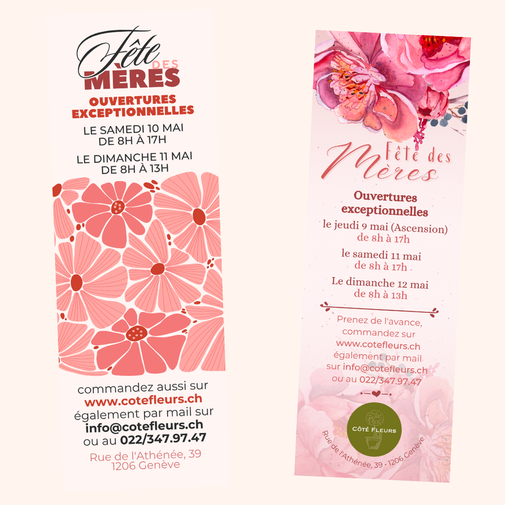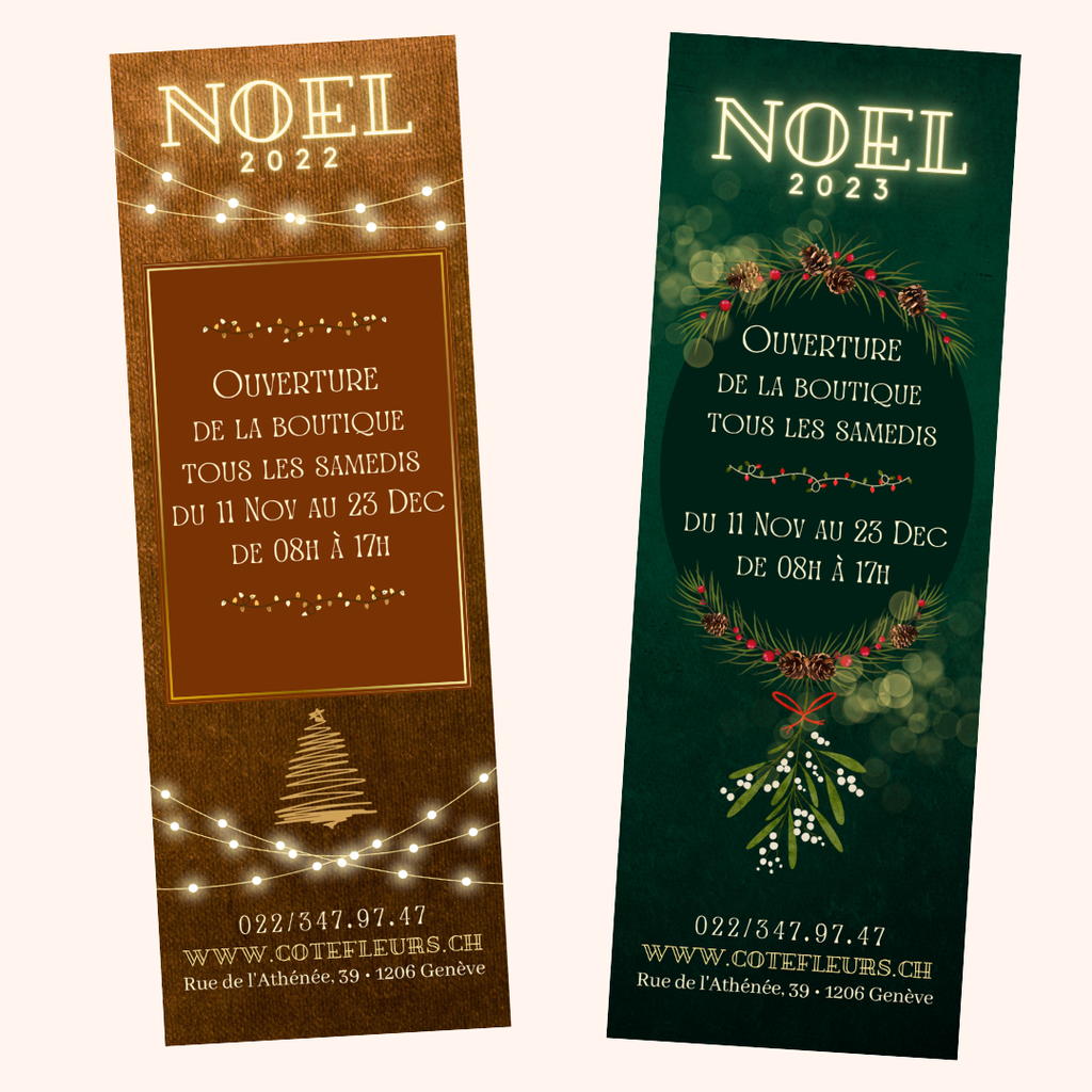 Depuis des années, j'accompagne pour les fêtes les plus importantes, la boutique Genevoise "Côté Fleurs" qui me laisse beaucoup d'espace de création et continu de me faire confiance chaque année! Ci-dessous, des "marque-pages" à agrafer sur des bouquets de fleurs.